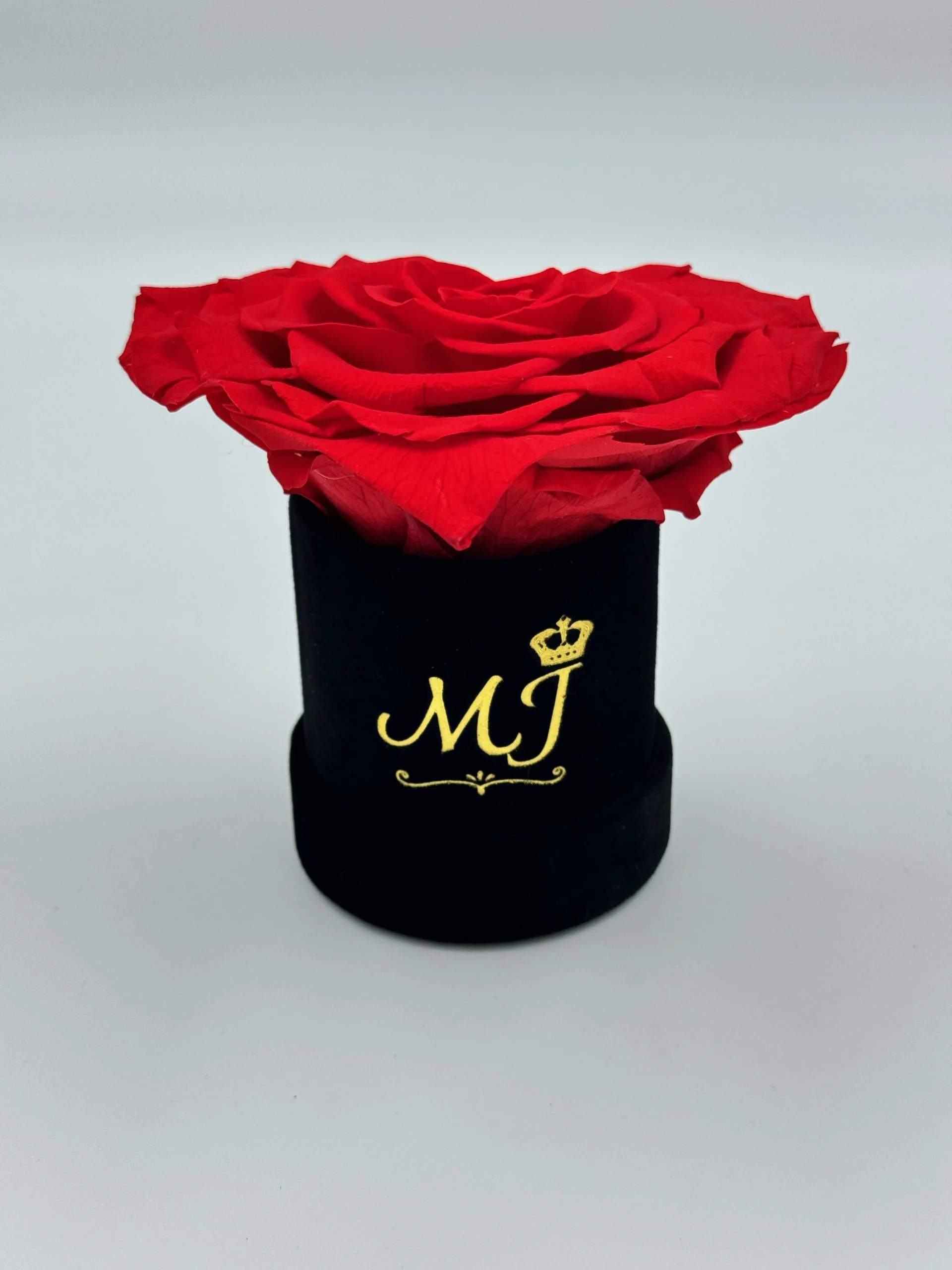 • 1 real eternal Jumbo size rose in a velvet finish box