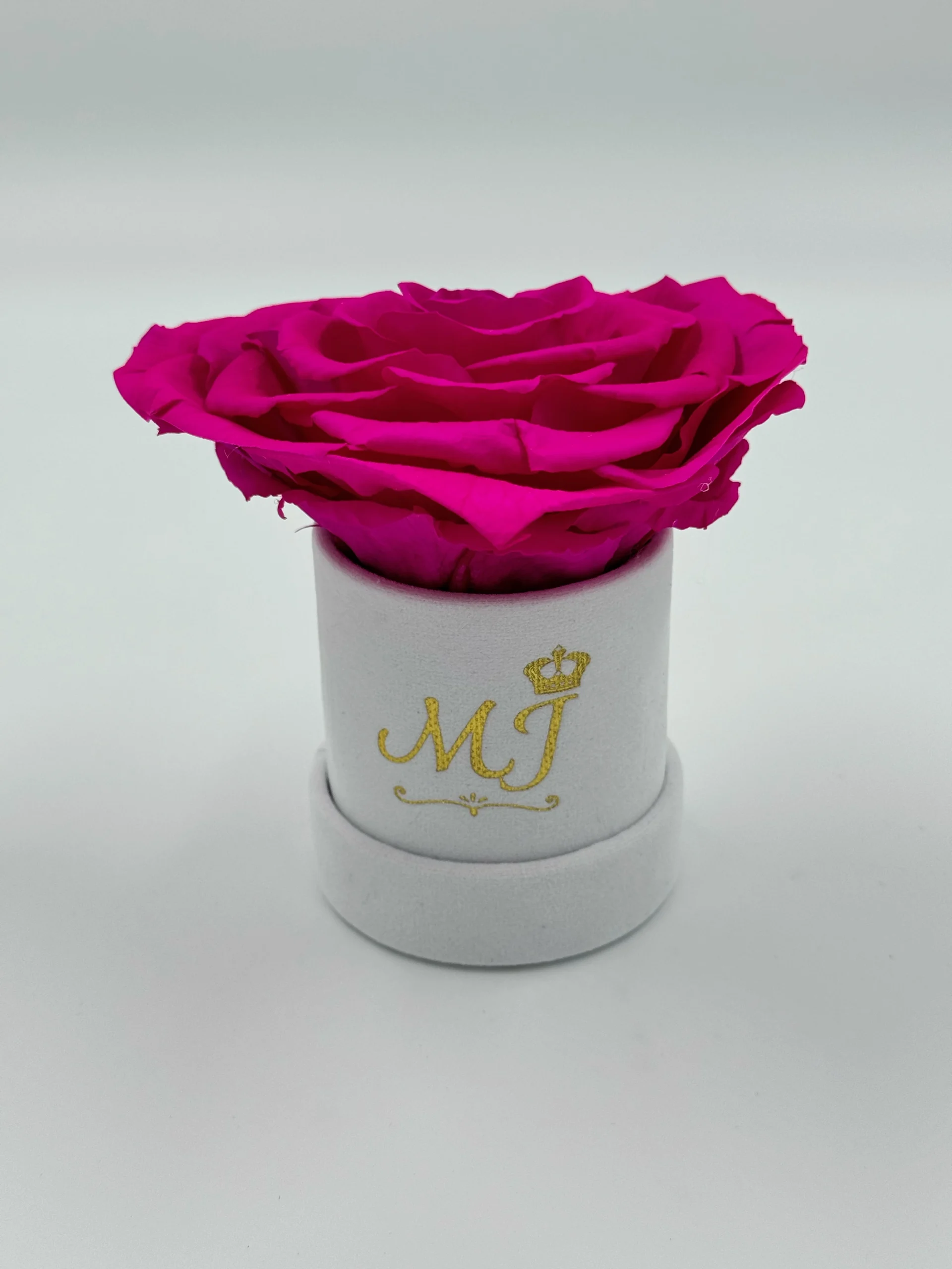 • 1 real eternal Jumbo size rose in a velvet finish box